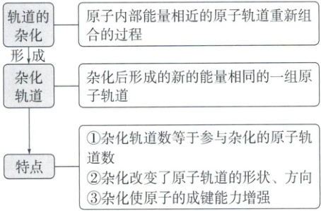 轨道的杂化:原子内部能量相近的原子轨道重新组合的过程