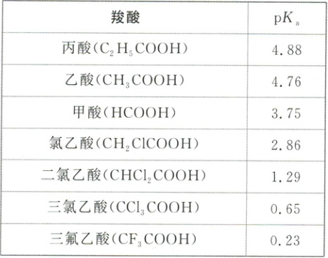 羧酸的酸性大小与其分子的组成和结构有关,羧酸的酸性可用$pK_a$($pK_a = -\lg K_a$)的大小来衡量,$pK_a$越小,酸性越强。根据下表,回答有关问题: