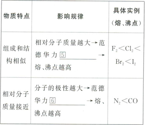 ① 一般来说,相对分子质量越大,范德华力③