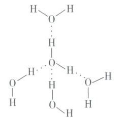 如下图所示,在冰中水分子间以氢键互相联结,形成相当疏松的晶体,从而在结构中有许多空隙,造成体积膨胀,密度减小。