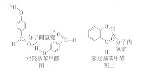 氢键两类,如对羟基苯甲醛分子间存在氢键(图一),邻羟基苯甲醛分子内存在氢键(图二)。(5) 对物质性质的影响