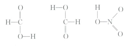 学思用 2. 甲酸可通过氢键形成二聚物$,HNO_3$可形成分子内氢键。试在图中画出氢键。