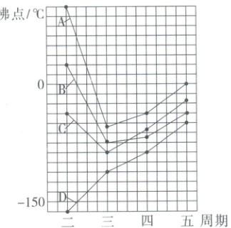 (1) 图中A、B、C、D四条曲线分别表示第ⅣA、ⅤA、ⅥA、ⅦA族元素的气态氢化物的沸点,其中表示第ⅥA族元素气态氢化物的沸点的是曲线