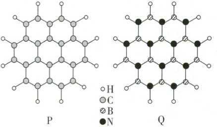 7. (2024·湖南卷)通过理论计算方法优化了 P 和 Q 的分子结构,P 和 Q 呈平面六元并环结构,原子的连接方式如下图所示。下列说法错误的是(