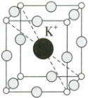 4. (2024·广西卷) $KMnF_{3}$ 立方晶胞如右图所示,晶胞参数为 $a\ pm$,该晶体中与一个 $F^{-}$ 紧邻的 $K^{+}$ 有 $\underline{