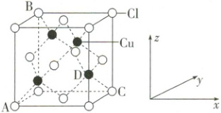 ②原子坐标参数可表示晶胞内部各原子的相对位置,图中各原子坐标参数分别为 $A(0,0,0)$;$B(0,1,1)$;$C(1,1,0)$;$D$ 原子的坐标参数为 $\underline{\quad\quad}$