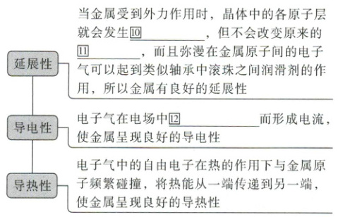 ⑨金属键 ⑩相对滑动 ⑪排列方式 ⑫定向移动