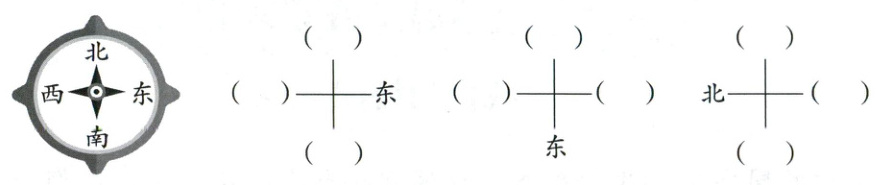 2. (1)根据指南针上四个方向的特点,“知一定三”填一填。
