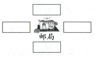 (2)根据平面图上方向的规则,在图上标出建筑物的名称。