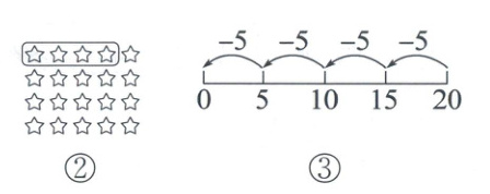 2. 根据算式15÷5= 3将草莓进行摆放,不可能是图(