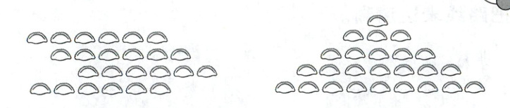 2. 希希和妈妈包了一些水饺,摆成下面的形状,分别有多少个?