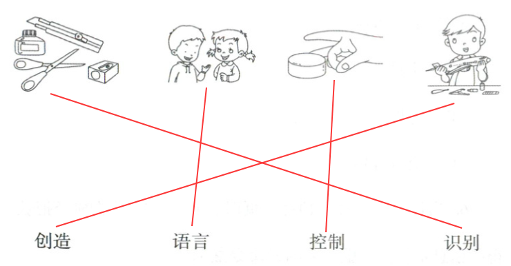 1. 将中做的各种活动与相对应的大脑的功能用线连起来。(4 分)