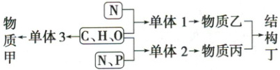 5. 下图为C、H、O、N、P等元素构成大分子物质甲~丙的示意图。