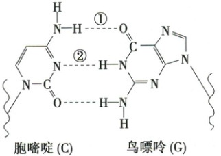 解析:选B。A.氧原子的电负性大于氮原子,半径小于氮原子,形成的氢键更强,则氢键的强度:①>②,故A正确;B.下图中“*”所标注的氮原子形成三个价键,N原子采用${sp^3}$杂化,因此该片段中所有参与形成氢键的原子不都共平面,故B错误;C.该片段中含有酰胺基,在一定条件下可发生水解反应,故C正确;D.胞嘧啶与鸟嘌呤分子中酰胺基的氮原子化学环境不同,故酰胺基的化学活性并不完全相同,故D正确。