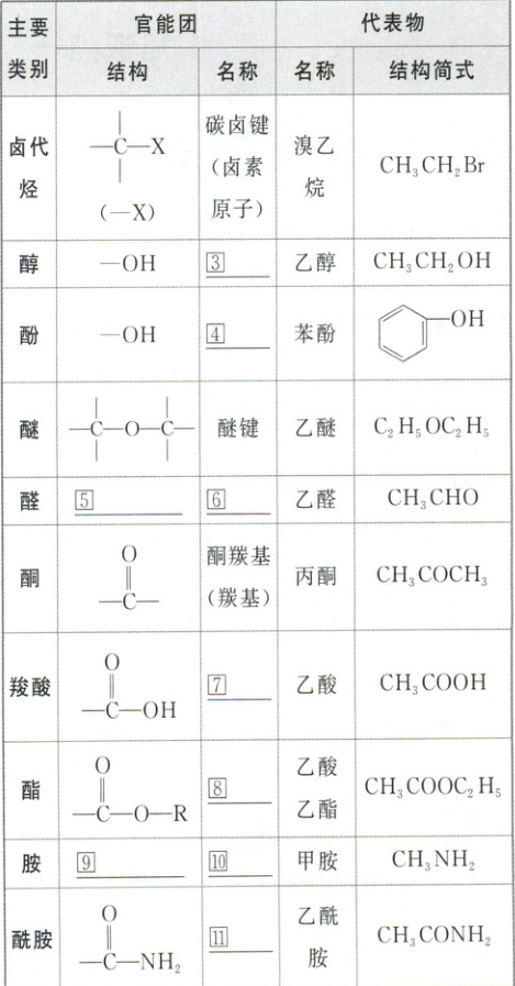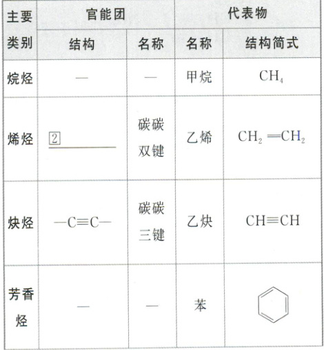 2. 常见有机化合物的主要类别、官能团及代表物