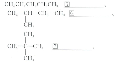 正戊烷、异戊烷、新戊烷(对应选项顺序为⑤正,⑥异,⑦新 ,若为选择题形式按题目设定选项填字母) ,若题目是让填命名名称,答案依次为正戊烷、异戊烷、新戊烷。