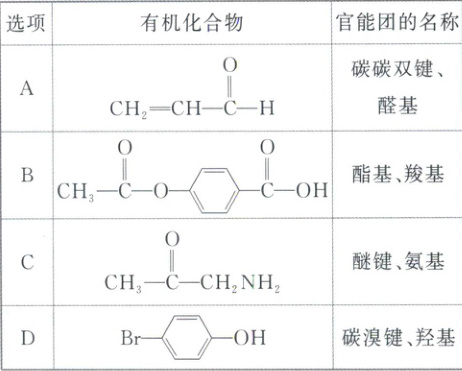 3. 下列有机化合物中所含官能团的名称错误的是(