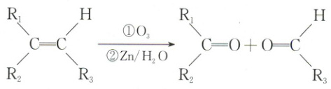 5. 烯烃通过臭氧氧化并经锌和水处理得到醛或酮,例如: