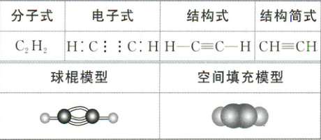 乙炔分子为直线形结构,键角180°,碳原子间以碳碳三键结合。