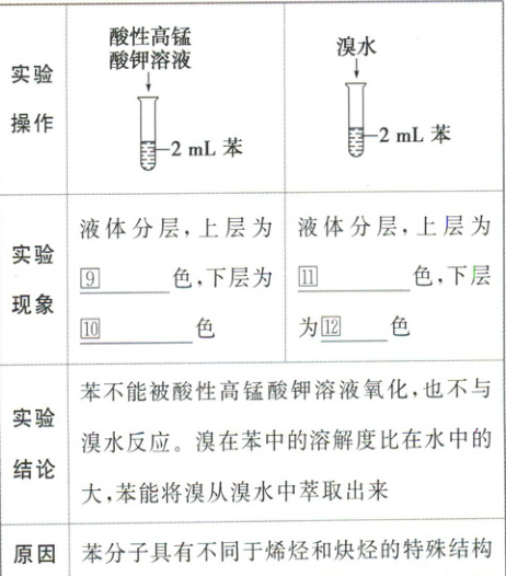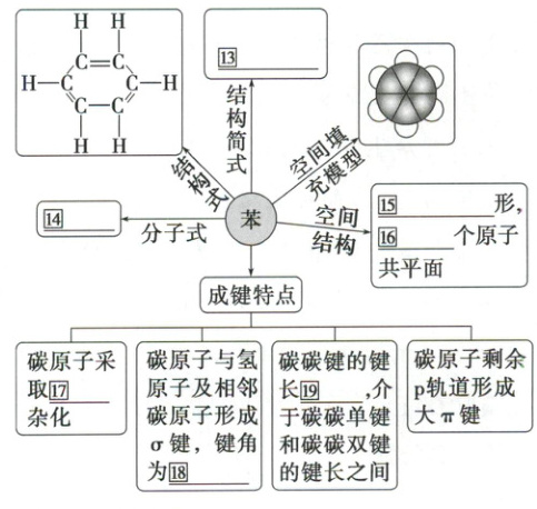 苯的大π键比较稳定,通常情况下不易发生加成反应,在以Pt、Ni等为催化剂并加热的条件下,苯能与氢气发生加成反应: