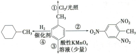 B.反应②说明甲基使苯环上的氢原子易被取代