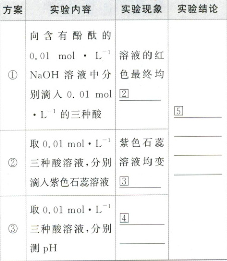 提供试剂:浓度均为$0.01mol·L^{-1}$的甲酸、苯甲酸和乙二酸、$0.01mol·L^{-1}的NaOH$溶液、酚酞、紫色石蕊溶液、$pH$试纸。