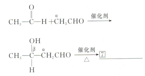 醛分子中在醛基邻位碳原子上的氢原子(α-H)受羰基吸电子作用的影响,具有一定的活泼性。分子内含有α-H的醛在一定条件下可发生加成反应,生成β-羟基醛,该产物易失水,得到α,β-不饱和醛。