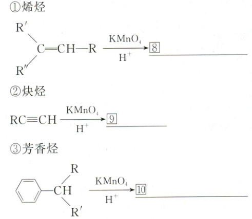 ⑧${R'_C=O + R-COOH}$ ⑨RCOOH ⑩${<=>[][] -COOH}$ ⑪至少连有一个氢原子