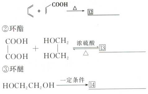 共轭二烯烃(含有两个碳碳双键,且两个双键被一个单键隔开的烯烃,如1,3-丁二烯)与含碳碳双键的化合物在一定条件下发生第尔斯-阿尔德反应,得到环加成产物,构建了环状碳骨架。