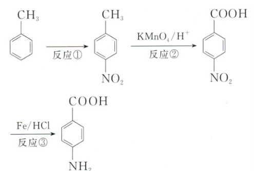 是一种用途广泛的化工产品和医药中间体,通常以甲苯为原料进行合成。下图为对氨基苯甲酸的一种合成路线(已知:烷基为苯环上邻、对位定位基,羧基为苯环上间位定位基)。下列说法不正确的是(
