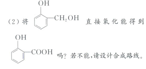 (2)不能。设计流程如下: ${<=>[][] - OH\\\quad\quad|\\\quad\quad - CH2OH}\xrightarrow{{NaOH}溶液}{<=>[][] - ONa\\\quad\quad|\\\quad\quad - CH2OH}\xrightarrow[\Delta]{{Cu,O2}}$${<=>[][] - ONa\\\quad\quad|\\\quad\quad - CHO}\xrightarrow{新制的{Cu(OH)2},{NaOH}溶液}\Delta$${<=>[][] - ONa\\\quad\quad|\\\quad\quad - COONa}\xrightarrow{{H+}}{<=>[][] - OH\\\quad\quad|\\\quad\quad - COOH}$