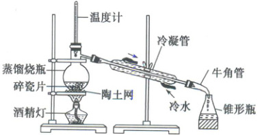 ⑤ 蒸馏完毕,先撤酒精灯再关冷凝水。