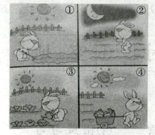 示例:春天是播种的季节,小白兔拿着锄头去松土,挖好坑后在地里撒下了许多白菜的种子。一天天过去了,小白兔每天都到地里去给白菜浇水、施肥。白菜在小白兔的精心培育下慢慢长大了。 到了收获的季节,小白兔拉着一辆手推车来到地里,把长大的白菜放到手推车上拉回家。小白兔拉着装满白菜的手推车,开心地笑了。