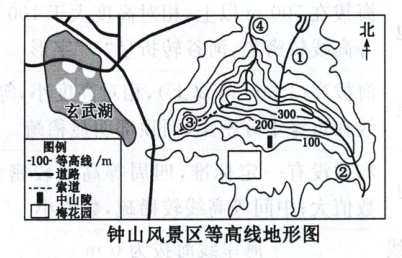 2024 年 2 月某同学游览了钟山风景区。读图,完成 1~3 题。