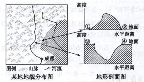 某地理研究性学习小组野外考察并绘制了某地貌分布及地形剖面图。读图,完成 4~5 题。