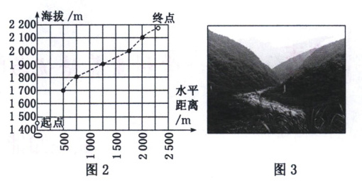 6. 为观察地势变化,同学们绘制了索道线路起点至终点的地形剖面图(图 2),请在图 2 中补充未完成部分(要求:标注出等高线对应位置点,并用平滑曲线连接)。