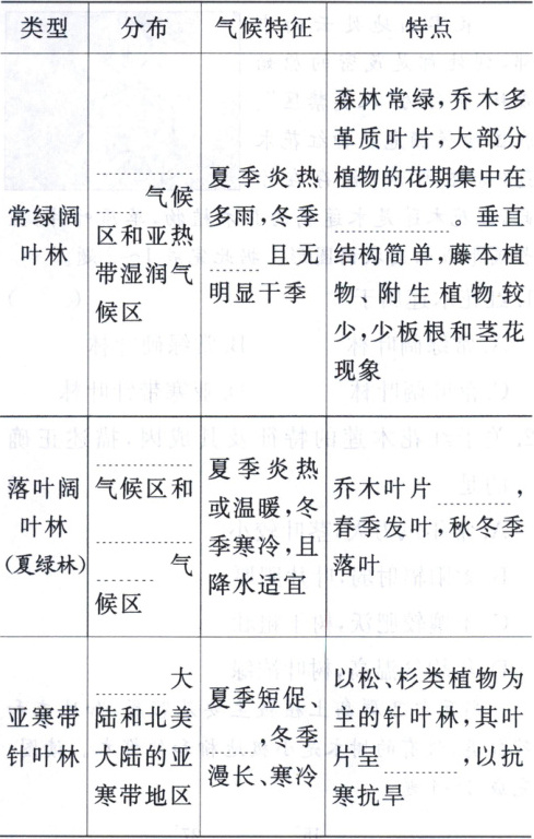 (2)热带雨林 热带季风 垂直 亚热带季风 温和 春末夏初 温带季风 温带海洋性 宽阔 亚欧 温和 针状