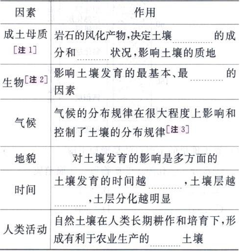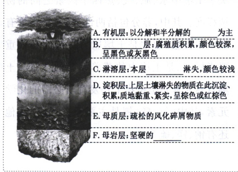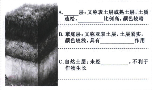 (3)①有机质 腐殖质 矿物质 岩石 ②耕作 有机质 保肥保水 耕作熟化