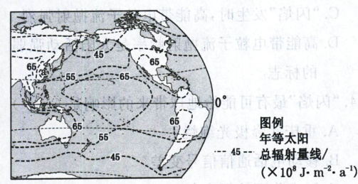 )A.太阳辐射能存在由低纬向两极递减的规律