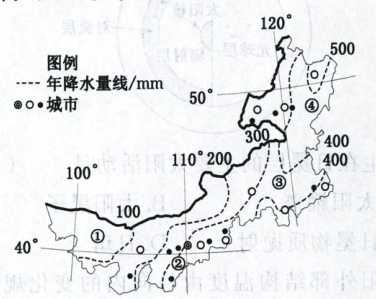 4. 如果仅考虑天气因素,图中①②③④地,太阳能资源最多的是(