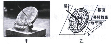 日晷是中国古代测日影定时刻的计时器。该同学去故宫观察了放置在太和殿前的日晷(图甲),并绘制了日晷计时示意图(图乙)。