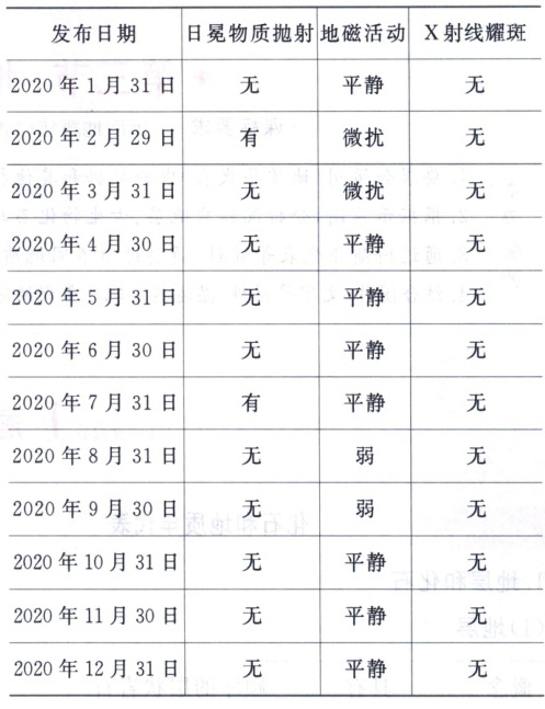 等太阳活动,在一定程度上会影响地球磁场。2020年太阳活动处于低水平,地球磁场没有出现“磁暴