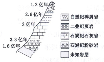 地层和生物化石是研究地球演化历史的重要途径,下图为某地地层分布示意图。据此完成 3~5 题。
