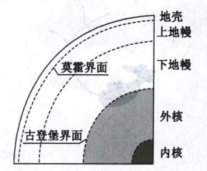 (1) 圈层划分的依据:地震波在地球内部传播速度的变化。