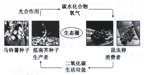 由教育部深空探测联合研究中心组织,重庆大学牵头的科普载荷“月面微型生态圈”,作为嫦娥四号的“乘客”之一曾登陆月球表面,进行人类首次月面生物实验。“月面微型生态圈”是一个由特殊铝合金材料制成的圆柱形“罐子”,“罐子”里面放置了马铃薯种子、拟南芥种子、昆虫卵、土壤、水、空气、照相机和信息传输系统设备,下图是“月面微型生态圈”工作原理图。