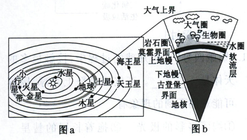 1. 据图a可知,地球上有生命存在的主要原因是(双项选择题)(