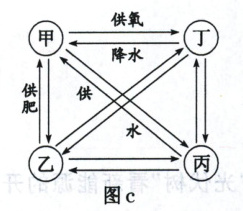。3. 图c是地球四大圈层相互关系的另一种表示形式,其中圈层丁的名称是