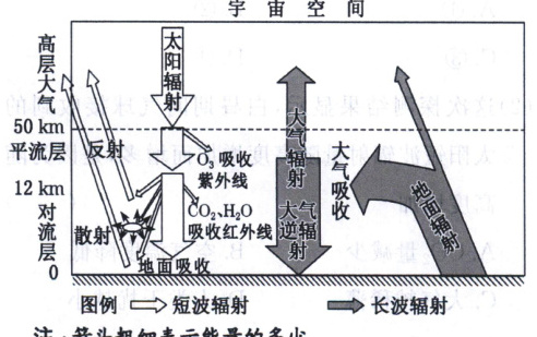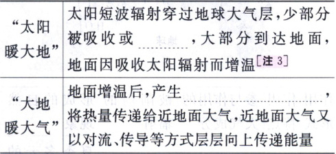 (2)近地面大气主要的、直接的热源:地面辐射,属于长波辐射。[注2]