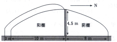 阴阳型双层日光温室是在传统日光温室的背面共用后墙搭建一个背阳的温室。采光面向阳的温室称为阳棚,采光面背阳的温室称为阴棚。采光面向阳的温室采用双层拱形设计,铺设双层棚膜,内层膜铺防寒棉被(白天揭开棉被,夜晚覆盖棉被)。下图为阴阳型双层日光温室示意图。据此完成3~5题。
