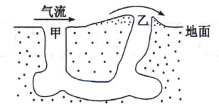 1. 造成两洞口温度(气压)差异,形成热力环流,促进空气流动。 2. 乙是进风口,甲是出风口。